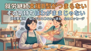 「毎日同じ作業の繰り返し。つまらない。でも、そう感じる自分がわがままなのかもしれない」もし今、そんなふうに自分自身を責めているなら、まず伝えたいことがあります。そのお気持ちは、決して間違っていません。実際に事業所を利用されている方とお話しし...