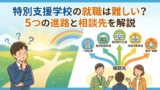 特別支援学校から就職する流れについては、「特別支援学校の就職は難しい?5つの進路と今日からできる準備」で解説しておりますため、ぜひご覧ください。